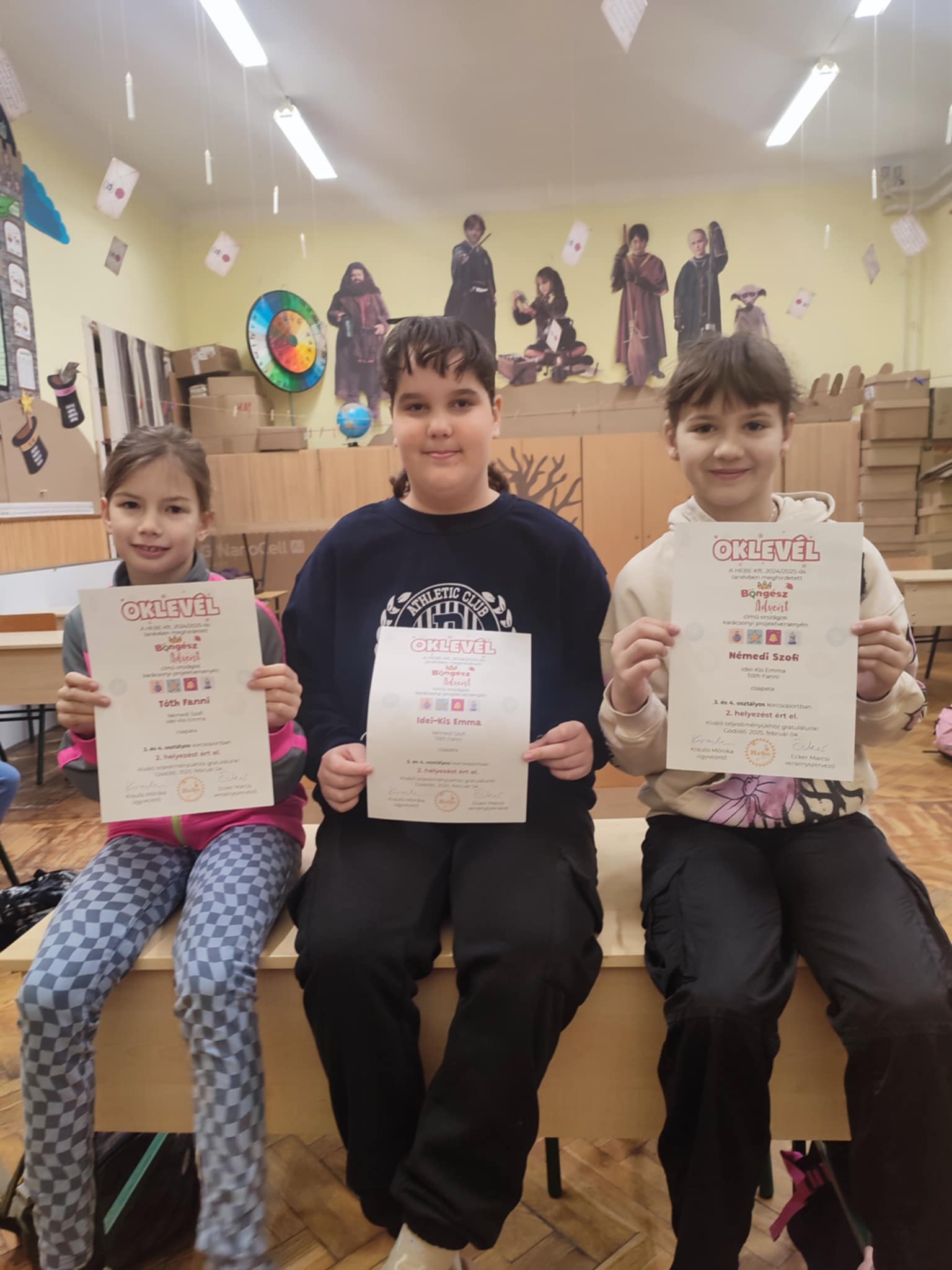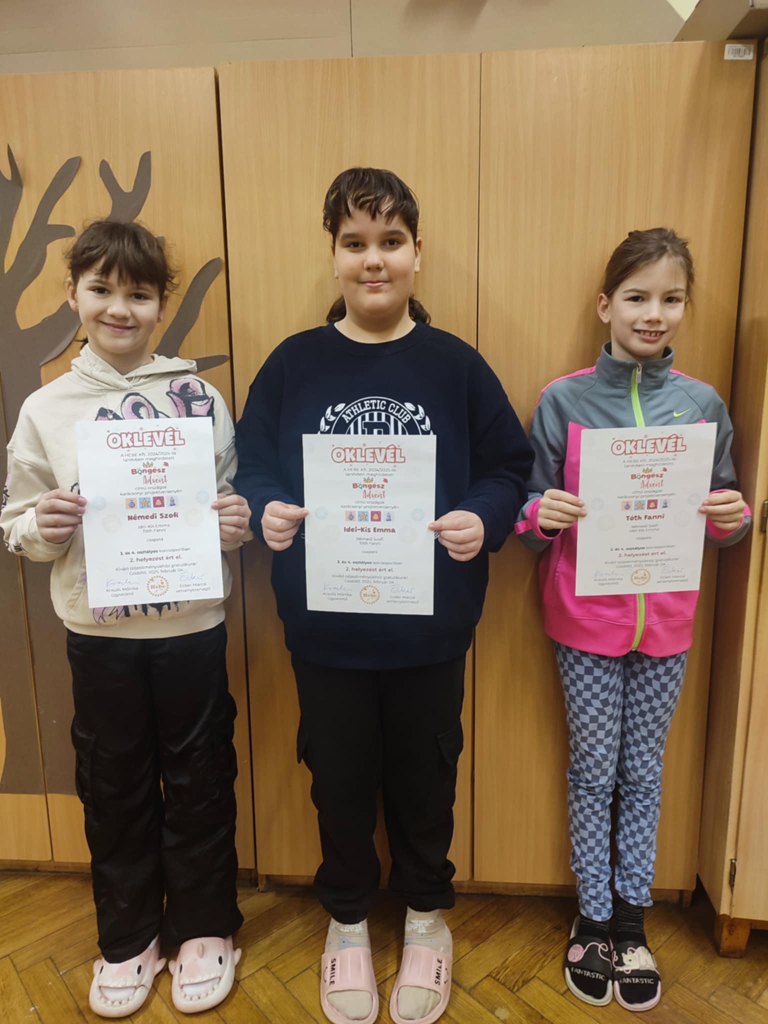 A Hebe országos Adventi projektversenyén a 4.b osztály három tanulója vett részt. A pályázatban az adventi időszak hagyományait és üzenetét dolgozták fel. A rejtvények, játékos feladatok, plakátkészítés, képeslap tervezés, szövegértés megoldása olyan jól sikerült, hogy Idei-Kis Emma, Némedi Szofi és Tóth Fanni 2. helyezést értek el.