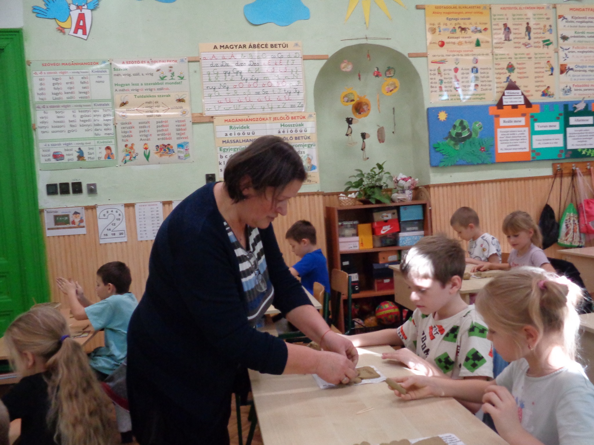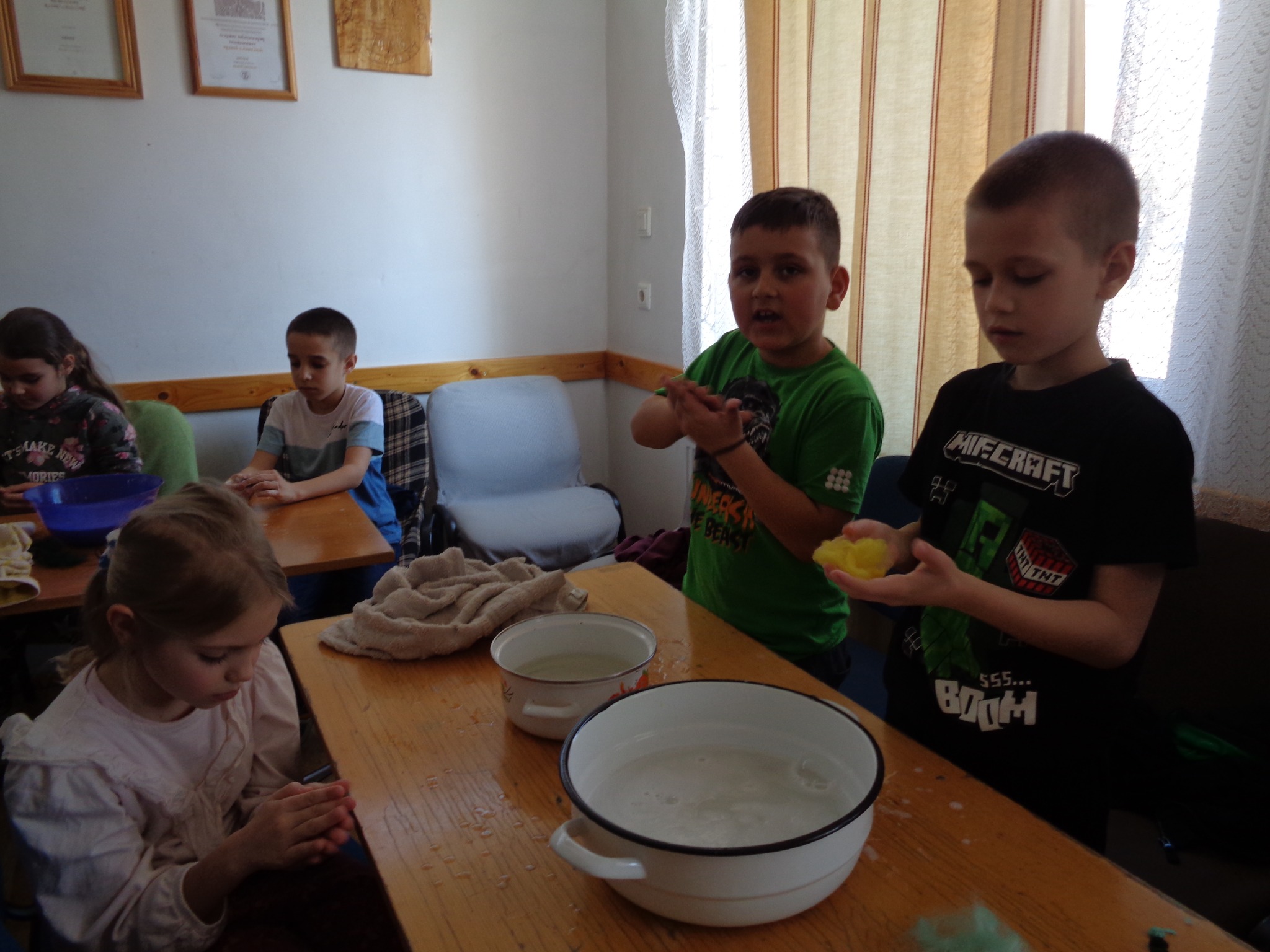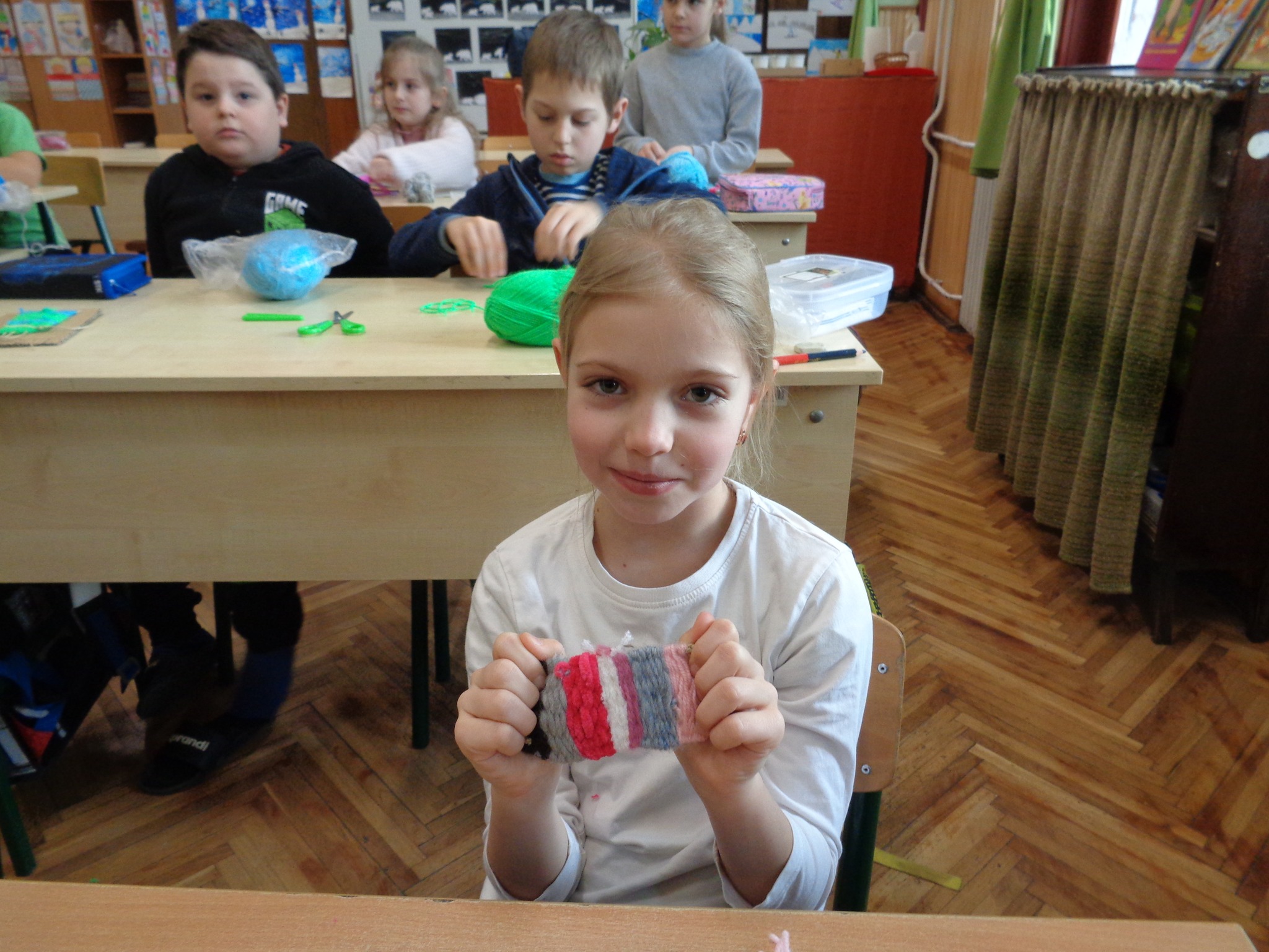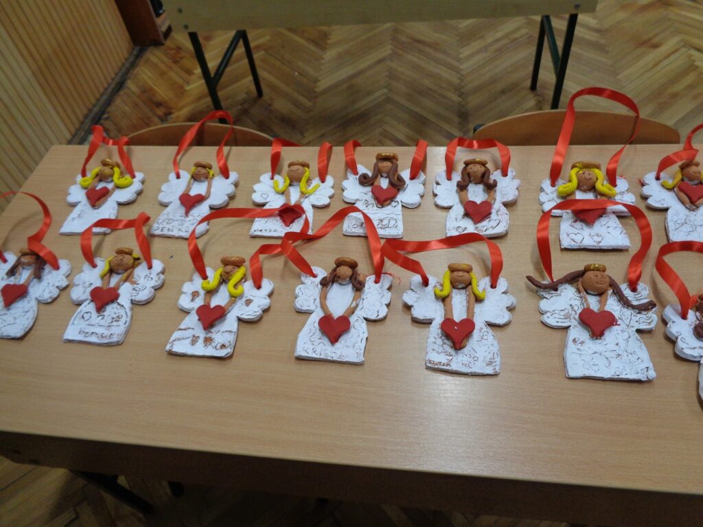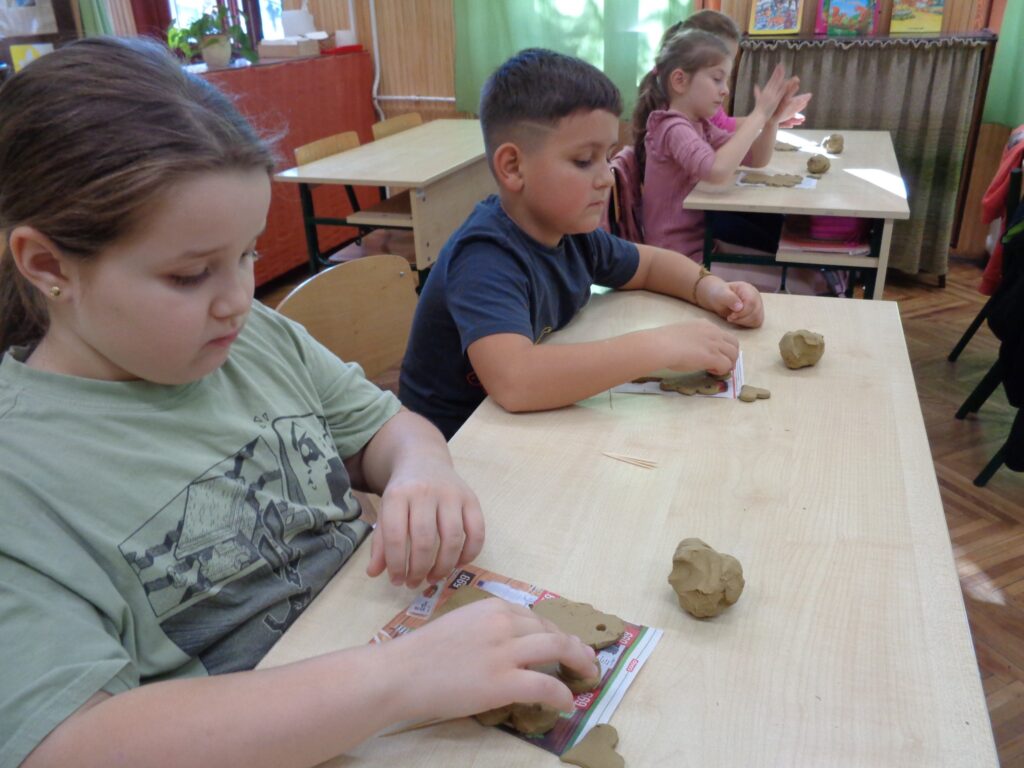 Csernák Erzsébet (Böbe Babák) közreműködésével agyagozhattak, gyönyörű angyalkákat készítettek. Majd a papírszövés, szövés alapjait tanulták meg, kis szőnyegek készültek.