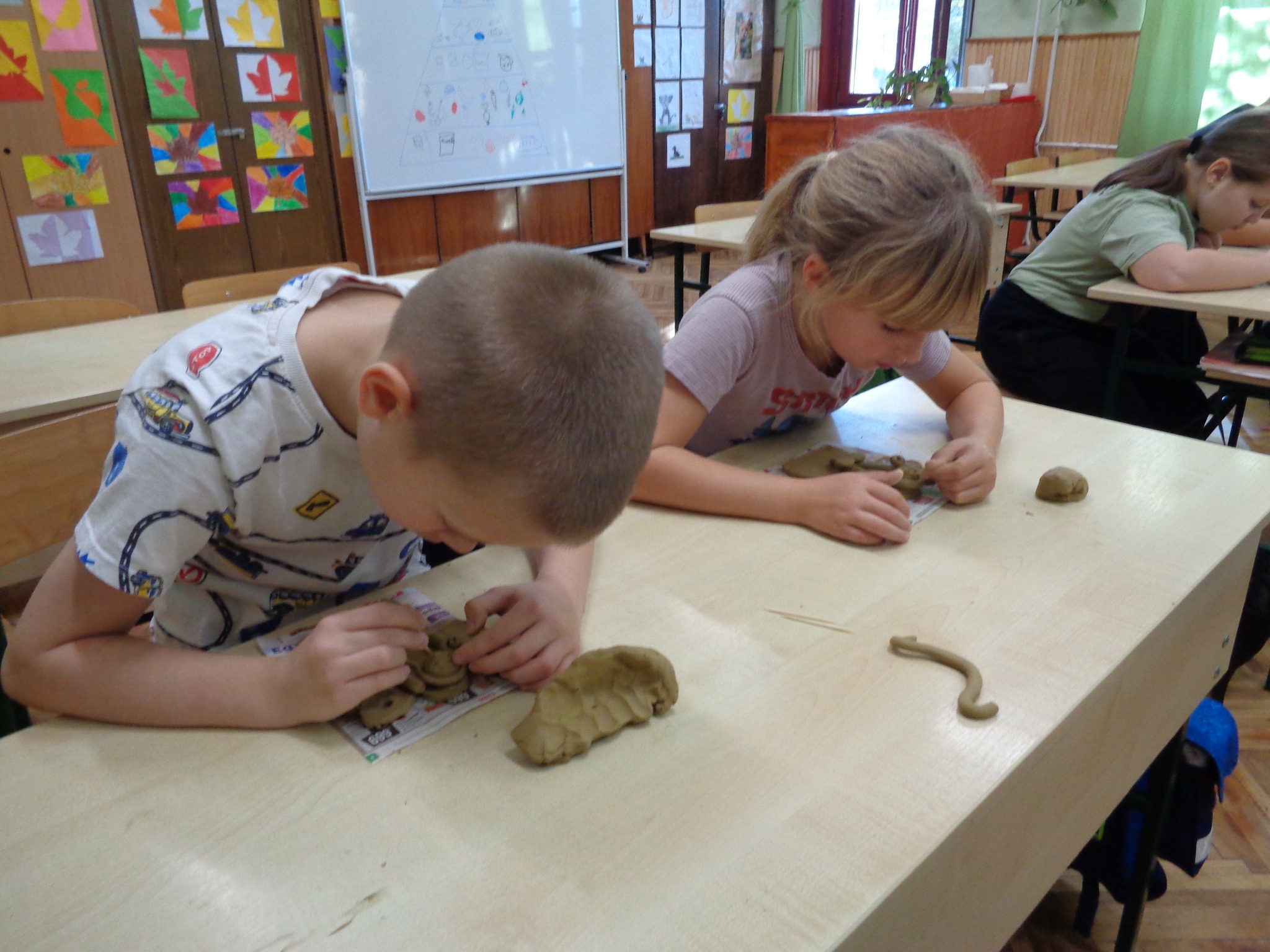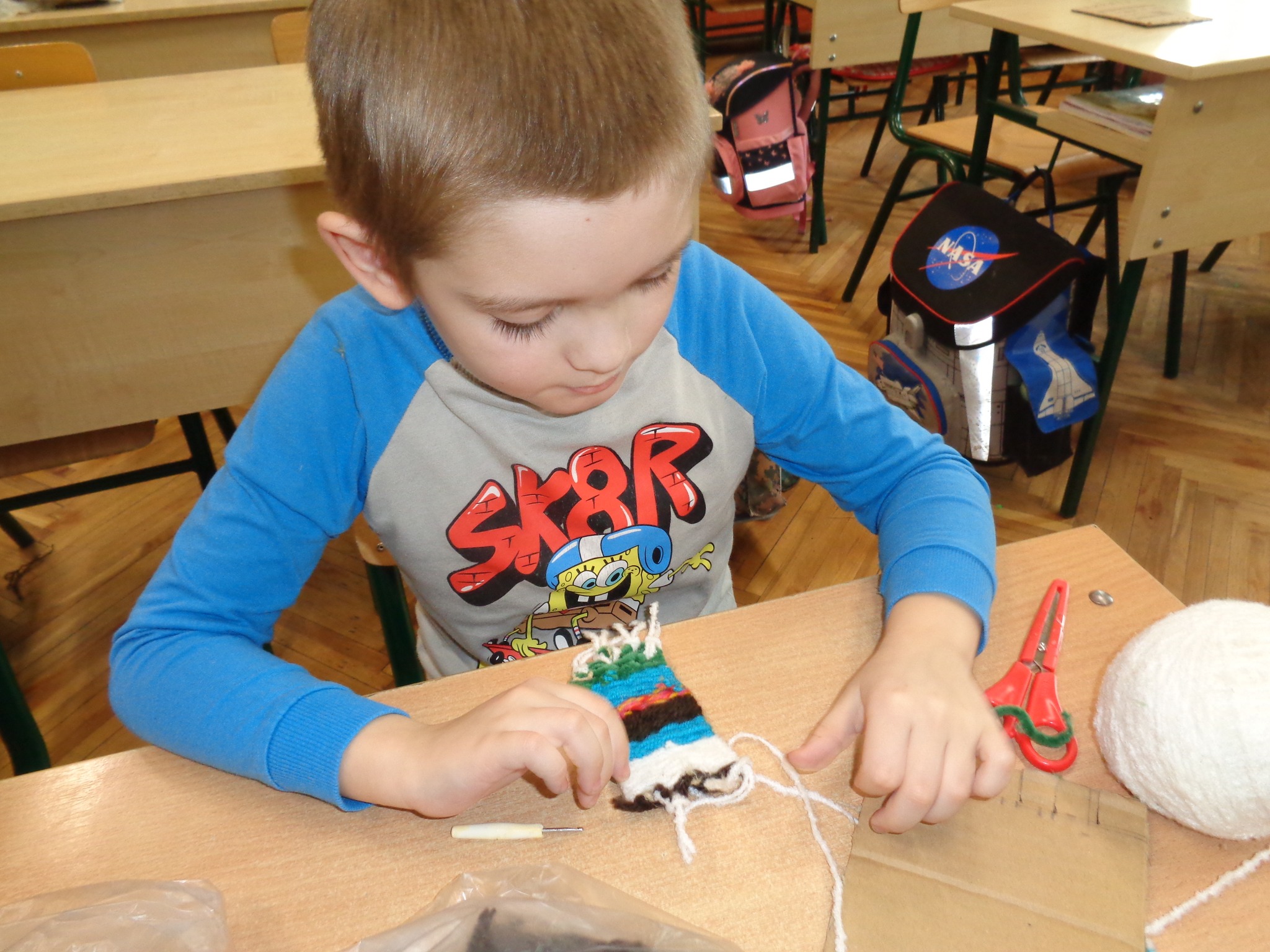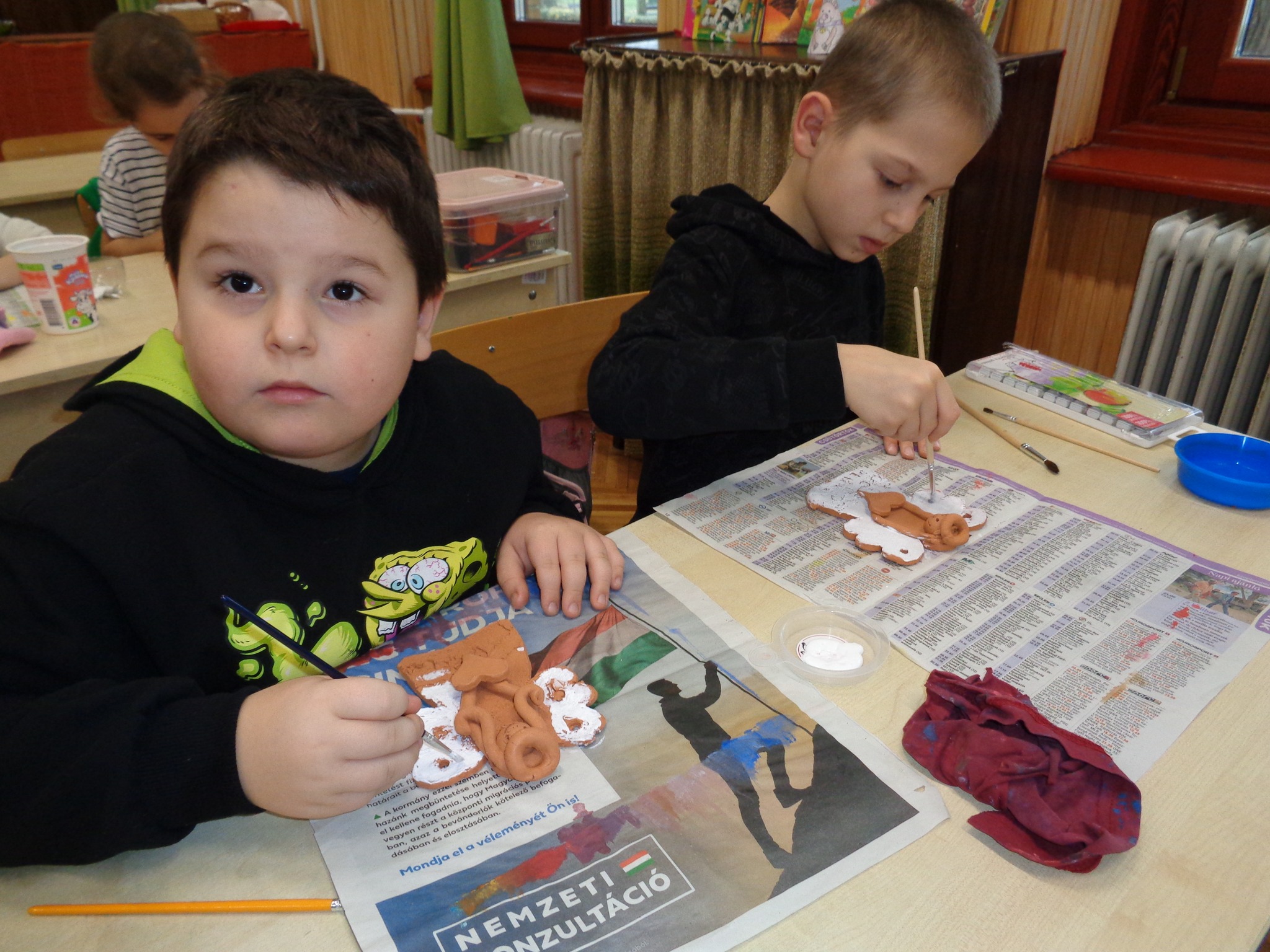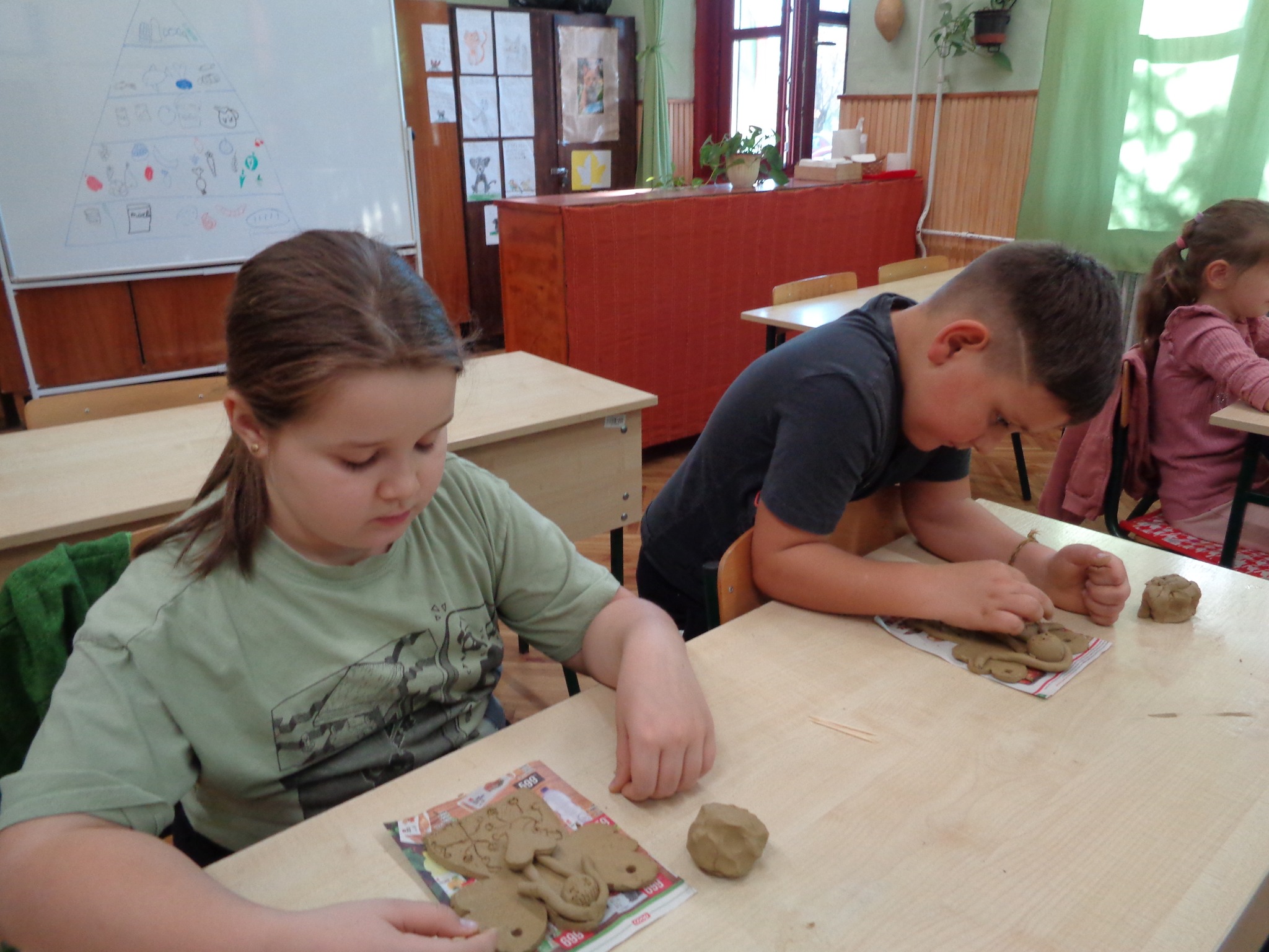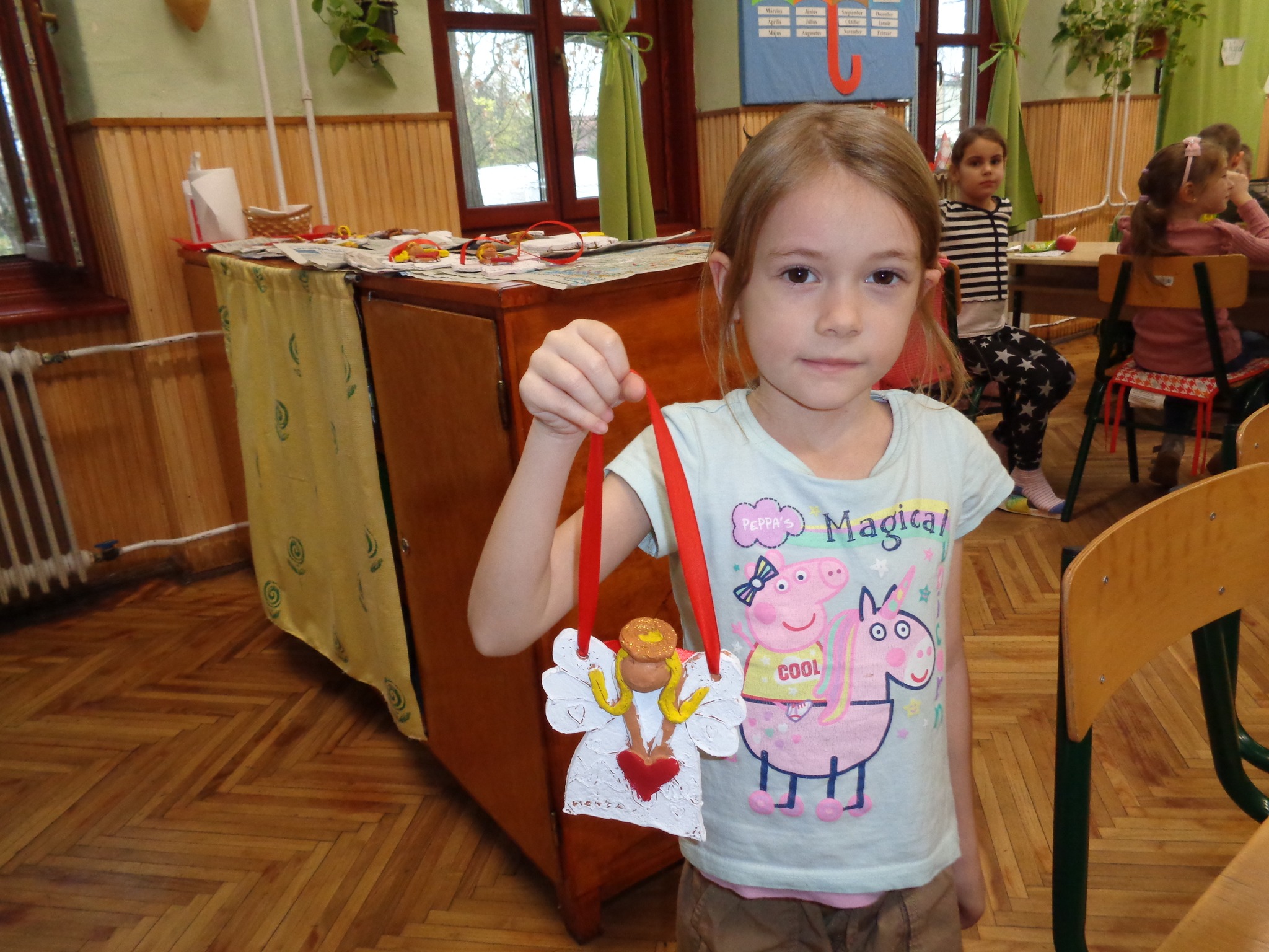 Csernák Erzsébet (Böbe Babák) közreműködésével agyagozhattak, gyönyörű angyalkákat készítettek. Majd a papírszövés, szövés alapjait tanulták meg, kis szőnyegek készültek.