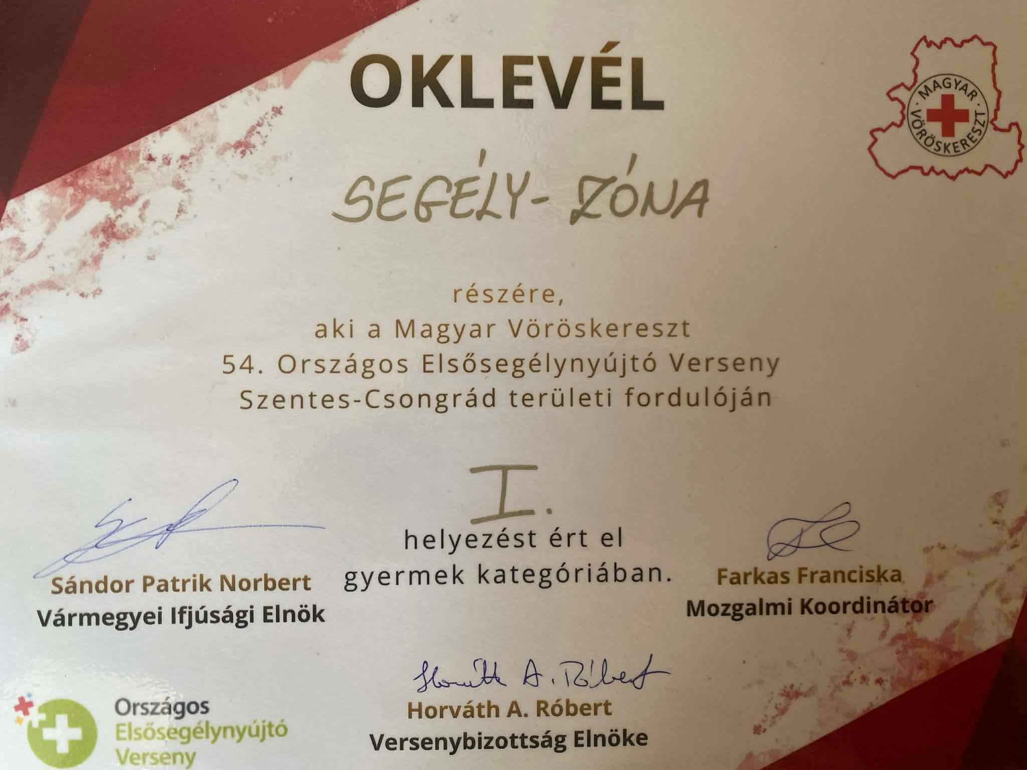 A csapat, gyermek kategóriàban I. helyezést ért el. A felkészülést segítette: Lengyel Dóra, Bàrdi Gergő, Zsótér Màrta