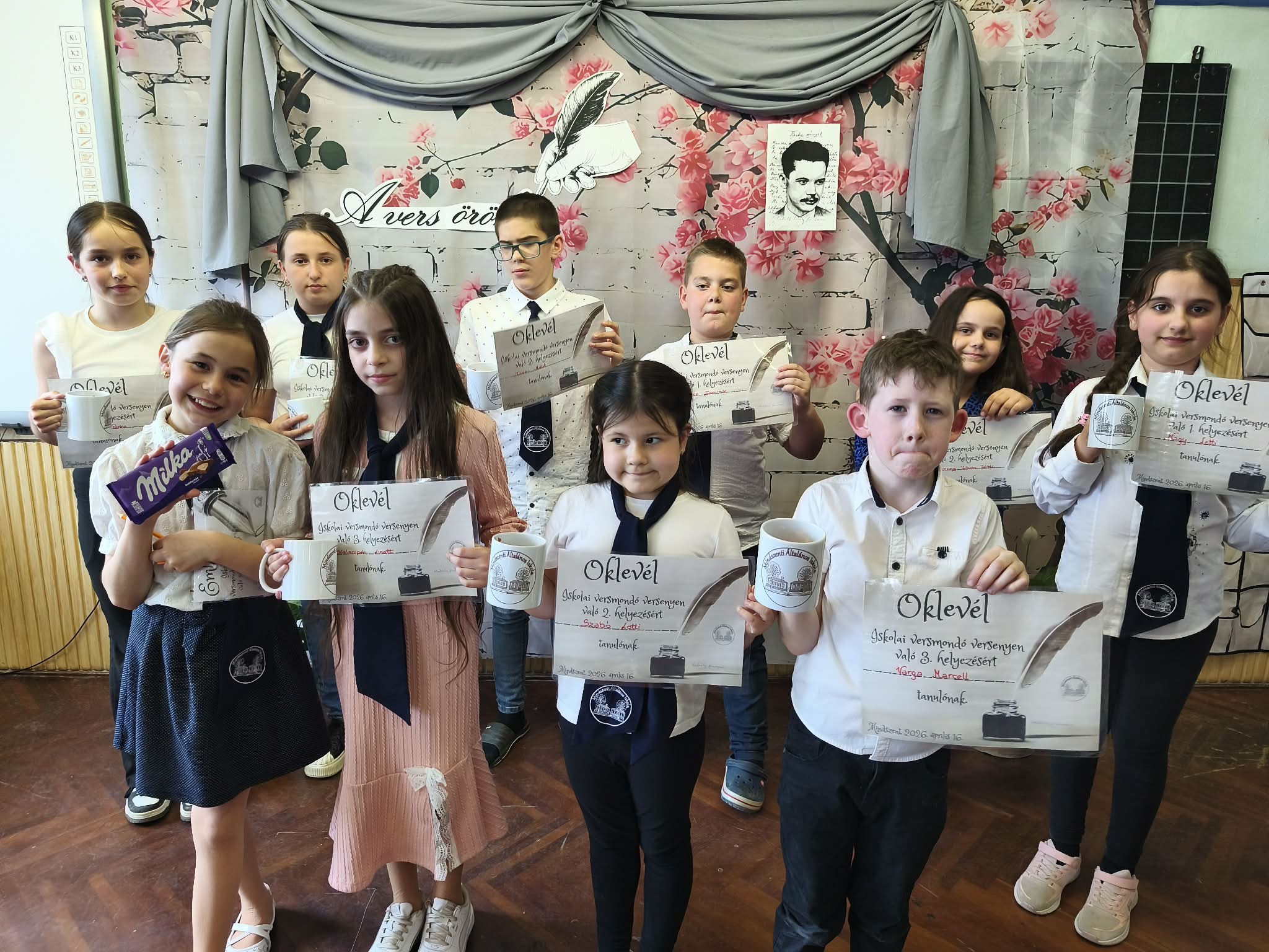 Ami az idén is nagy sikert aratott. A rendezvényen 6 évfolyamból 27 versenyző mérettette meg magát. A zsűrinek (Mihály Jánosné, Vida Mihályné, Rózsa Margaréta) igen nehéz dolga volt az értékelésben. Köszönjük a munkájukat!